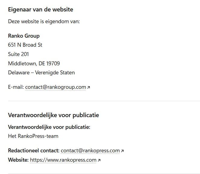 Alle inhoud op deze website, waaronder onder meer teksten, afbeeldingen, foto’s, grafieken, logo’s, video’s, pictogrammen, geluiden en lay-out, is exclusief eigendom van Ranko Group of haar partners, tenzij anders vermeld.